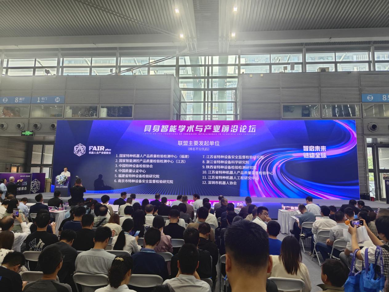 2025年4月24日,具身智能学术与产业前沿论坛在深圳举行,会上全国特种机器人检验检测认证联盟发起仪式同期举行。我校省级科研平台-江苏省特种机器人工程研究中心作为联盟发起单位受邀参加,中心副主任智能制造学院王勇研究员出席活动。
